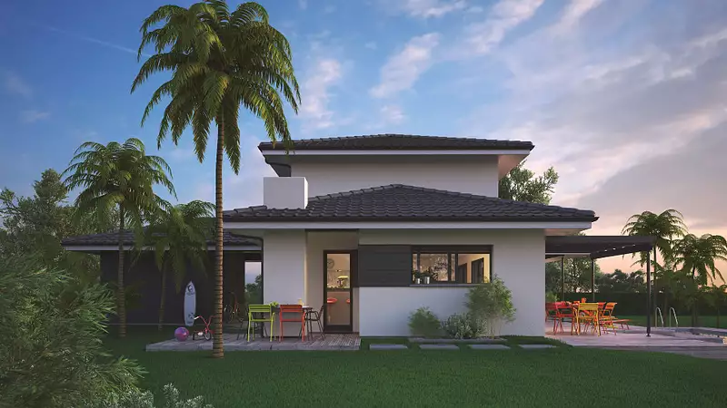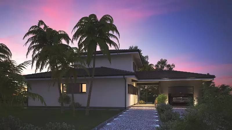 Découvrez la maison Florida, une villa contemporaine et élégante de 150 m², aux volumes généreux et à l'architecture originale sur plusieurs niveaux.