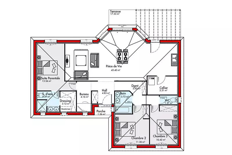 Idée de réalisation en modèle prêt à décorer sur l’un de nos terrains partenaires, sous réserve de disponibilités. Voir détails en agence.