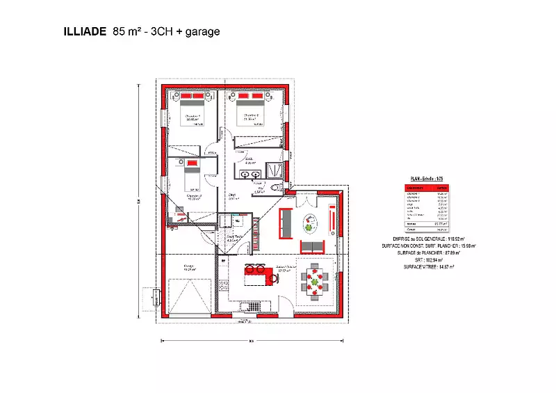 Proposée par ALPHA CONSTRUCTIONS – 4 pièces - 3 chambres - terrain 713 m²