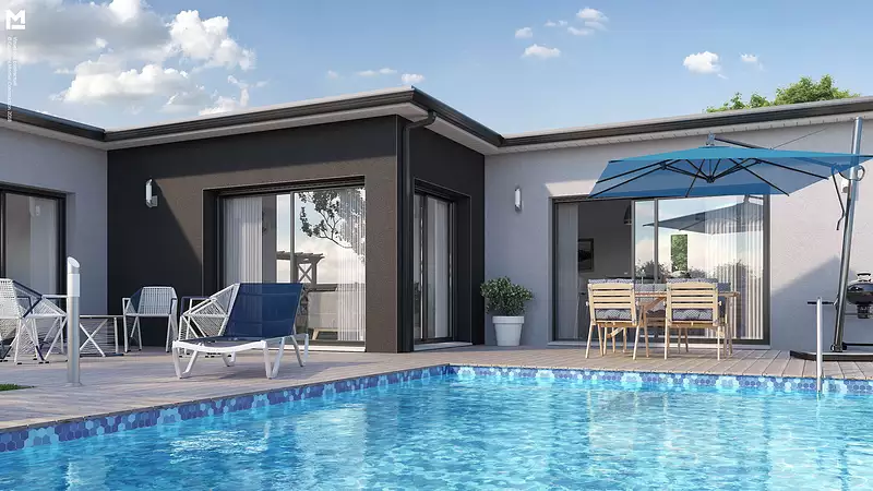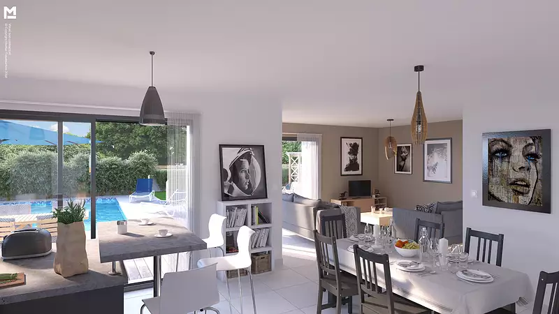 Succombez au charme de cette maison moderne et lumineuse, pensée pour allier confort et optimisation des espaces. Son vaste espace de vie baigné de lumière invite à la convivialité et s’adapte à votre mode de vie. Côté nuit, chacun profite de son intimité avec 3 belles chambres, dont une suite parentale avec dressing et salle d’eau privée. Une salle de bain supplémentaire et un cellier viennent compléter cet agencement idéal pour un quotidien fluide et pratique. Avec son architecture contemporaine et ses finitions soignées, cette maison est entièrement personnalisable pour répondre à toutes vos envies. Pour un confort optimal et conforme à la RE2025, cette maison dispose d’une PAC avec plancher chauffant et volets roulants électriques. À noter : Le prix indiqué exclut les revêtements de sol des chambres, la cuisine aménagée, la peinture, la décoration, les raccordements, les frais de notaire et l’assurance dommages-ouvrage. (Piscine non contractuelle, non comprise dans le prix)). Imaginez votre futur chez-vous, contactez-nous dès aujourd’hui !.