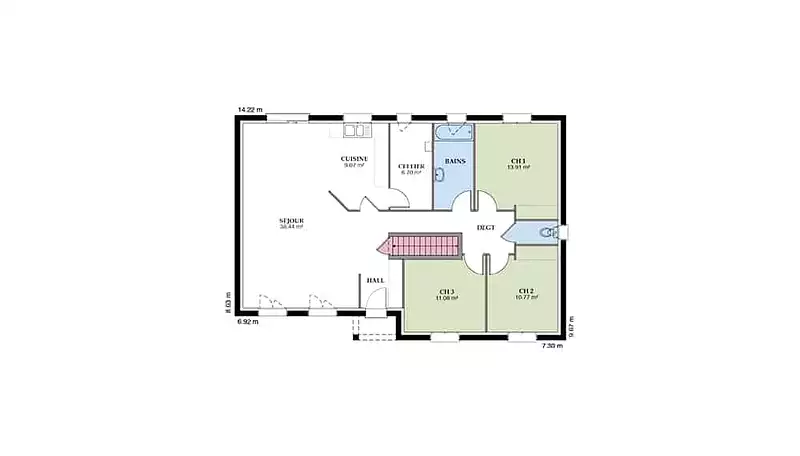 Cette habitation vous propose une surface habitable de 87 m² sur un niveau. Vous y disposerez de trois jolies chambres réunies autour d’un dégagement, avec la salle de bains et des w.c. séparés. Du côté de l’espace jour, un grand séjour-cuisine ouverte vous permettra de vous sentir totalement à l’aise.