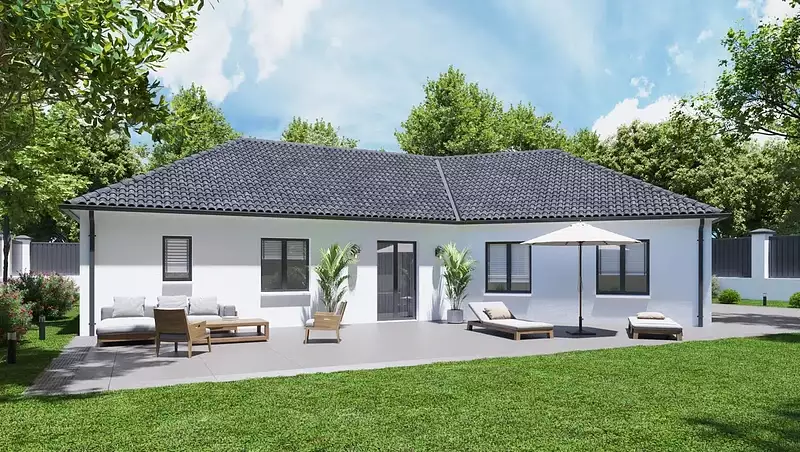 L'Eva est disponible avec une toiture à 2 ou 4 versants, vous permettant de choisir le style qui s'harmonise le mieux avec vos préférences esthétiques et les caractéristiques de votre terrain. De plus, ce modèle intègre un garage, solution pratique pour sécuriser votre véhicule et stocker vos équipements, tout en conservant l'élégance de la structure globale. Pour ceux qui préfèrent maximiser l'espace de vie, Eva est également proposée sans garage, offrant ainsi une flexibilité totale pour répondre à vos besoins spécifiques.