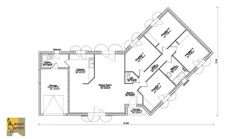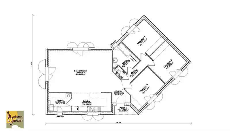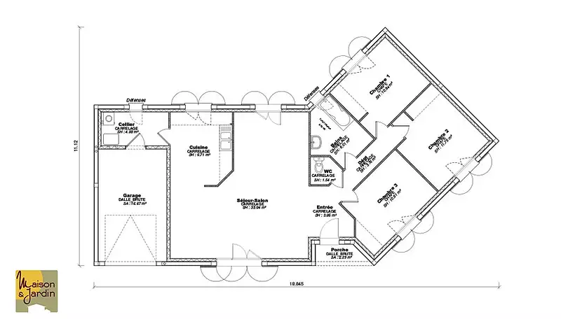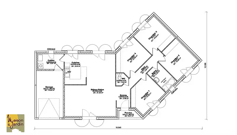 Proposée par MAISON ET JARDIN – 4 pièces - 3 chambres - terrain 1 044 m²