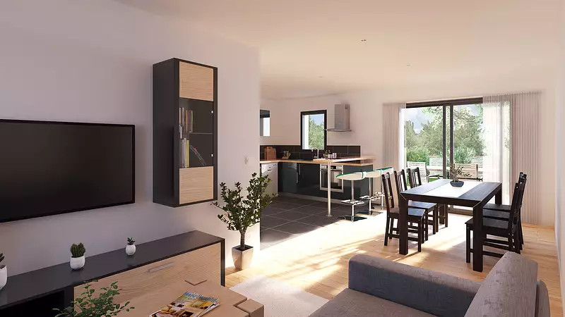 Un premier chez-soi accessible, pratique et pensé pour durer — ou la maison idéale pour vos escapades en bord de mer. Cette maison de plain-pied séduit par son espace de vie lumineux et accueillant, parfait pour un quotidien à deux ou des week-ends entre amis. Avec ses 2 chambres, son garage intégré et son cellier fonctionnel, elle combine confort et simplicité. Facile à vivre, économique et personnalisable, elle s’adapte aussi bien à un premier achat qu’à une résidence secondaire !. Pour un confort optimal et conforme à la RE2025, cette maison dispose d’une PAC avec plancher chauffant et volets roulants électriques. À noter : Le prix indiqué exclut les revêtements de sol des chambres, la cuisine aménagée, la peinture, la décoration, les frais de notaire et l’assurance dommages ouvrage. .