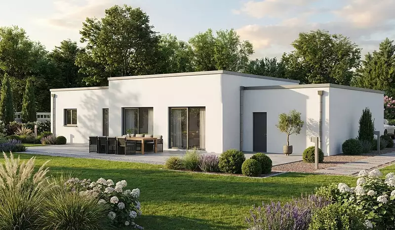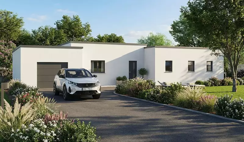 Cette maison de 90 m² dispose de 4 pièces, dont 3 chambres, et d'un garage accolé. Les lignes simples et originales de la Venus favorisent une organisation optimale des volumes : le garage d'un côté, la pièce de vie au centre, et les chambres de l'autre côté. La répartition des pièces est idéale, avec une séparation claire entre la partie jour et la partie nuit.