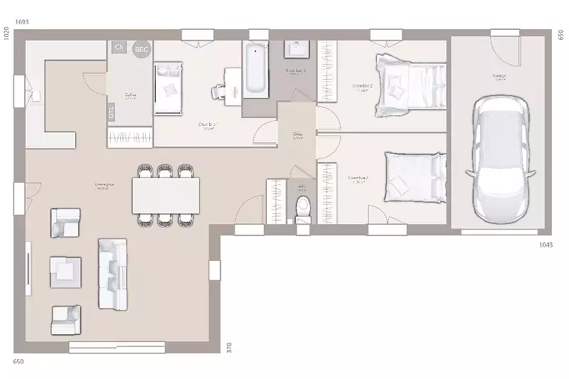 Proposée par MAISONS FRANCE CONFORT – 4 pièces - 3 chambres - terrain 345 m²