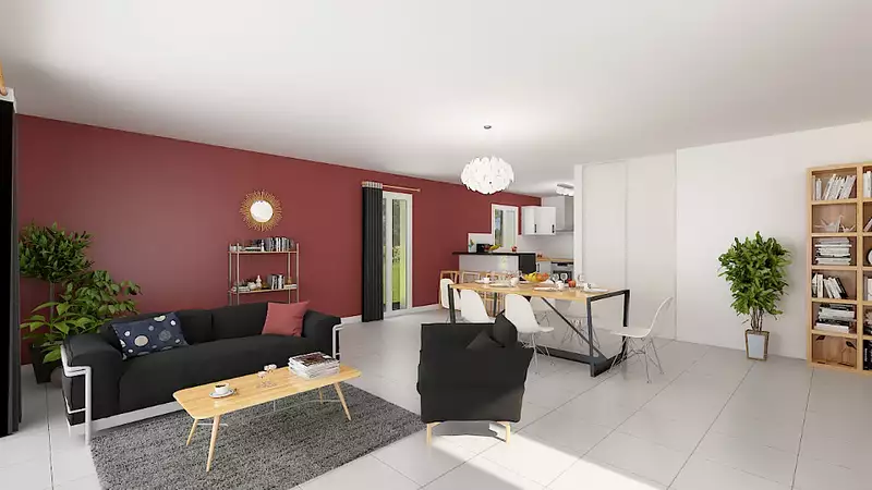 Idéalement située - À Montbrison (42600), maison neuve en vente de 4 pièces, 95 m² de surface et 345 m² de terrain. Conçue de plain-pied, elle offre trois chambres, une cuisine et une salle de bains.