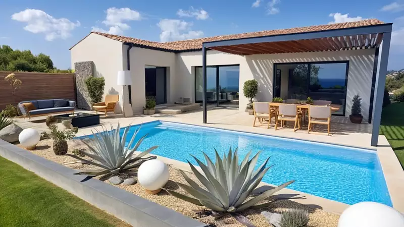 Le terrain, spacieux avec 980 m², est orienté au sud, garantissant une exposition optimale pour profiter du soleil tout au long de la journée. La maison, de style traditionnel, est équipée d'un garage attenant pour un accès facile et sécurisé. Le mode de chauffage à pompe à chaleur et l'eau chaude individuelle assurent un confort moderne tout en respectant l'environnement.