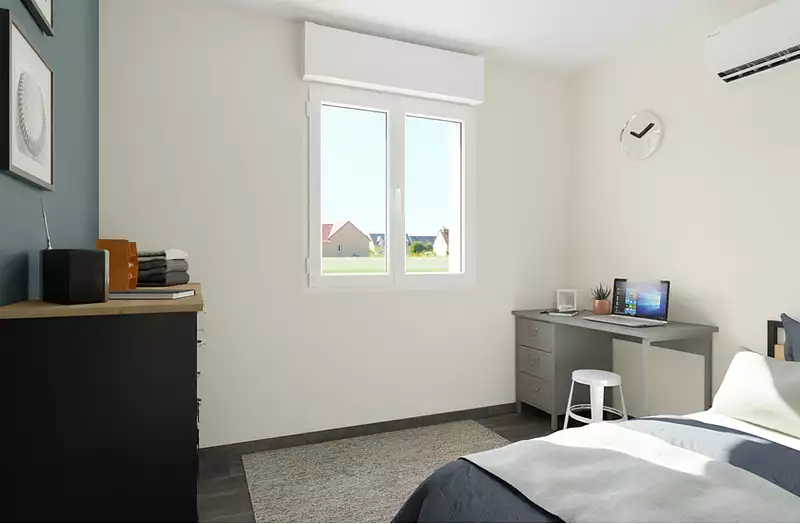 Les menuiseries sont en PVC de couleur blanche. La toiture est réalisée en tuiles béton double romane. Plusieurs couleurs d'enduit extérieur sont proposées.