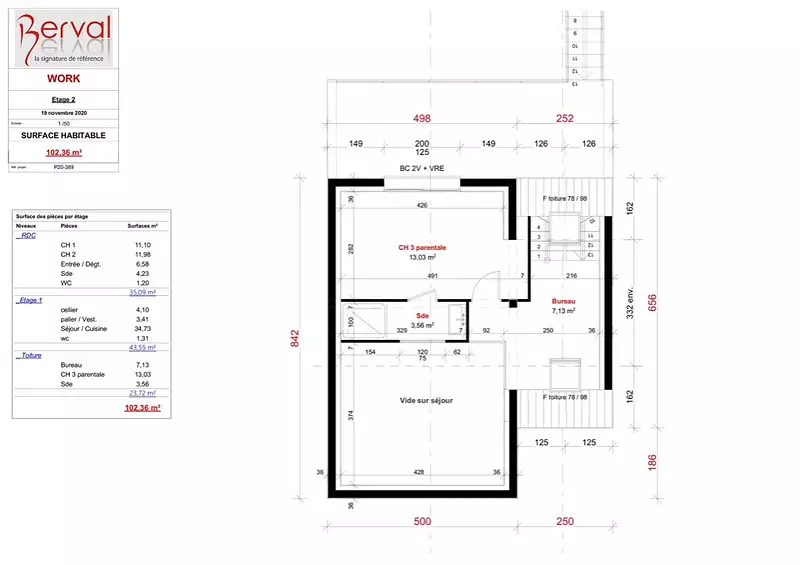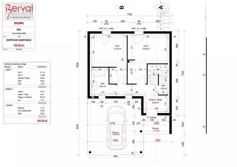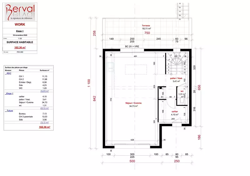 Proposée par BERVAL – 4 pièces - 3 chambres - terrain 300 m²