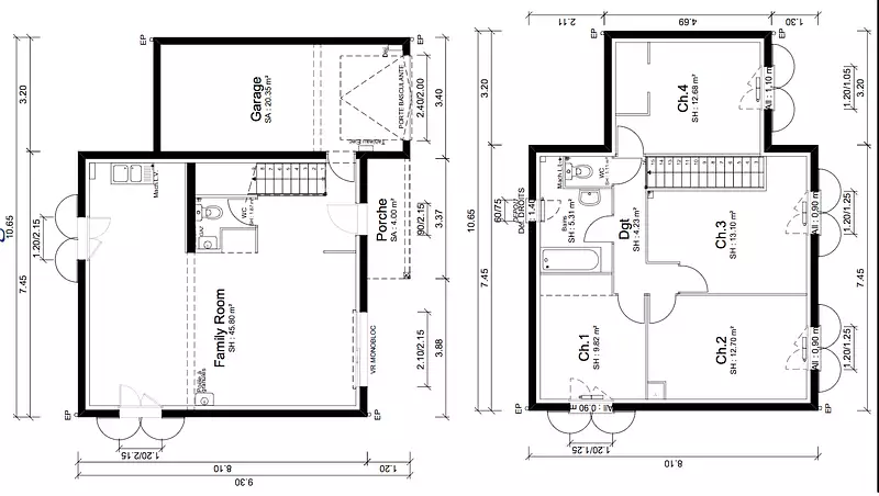 - Surface garage : 20 m²