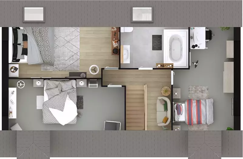Cette maison comporte 2 niveaux. Elle est neuve.