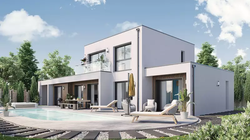 Le modèle Gaillard séduit par son architecture contemporaine et sa luminosité exceptionnelle. Avec ses 140 m², cette maison à étage conjugue modernité, confort et élégance, offrant un cadre de vie chaleureux et convivial. Au rez-de-chaussée, une vaste pièce de vie ouverte regroupe salon, salle à manger et cuisine dans un espace baigné de lumière naturelle grâce à de grandes baies vitrées. Une suite parentale avec salle d’eau privative complète cet étage, apportant confort et intimité. À l’étage, deux chambres accueillantes, une salle de bain moderne et un palier lumineux composent un espace idéal pour les enfants ou les invités. Le garage intégré ajoute fonctionnalité et praticité à cette maison pensée dans les moindres détails. Son design soigné, ses matériaux de qualité et sa terrasse élégante font du modèle Gaillard une maison à la fois contemporaine, fonctionnelle et agréable à vivre, adaptée à toutes vos envies de confort. Pour vous assurer un confort de vie et conformément à la RE2025, nous avons choisi un mode de chauffage par PAC + plancher chauffant, volets roulants électriques. Prix hors décoration, frais de notaire, raccordements, dommage ouvrage. (Piscine non contractuelle et non comprise dans le prix. ).