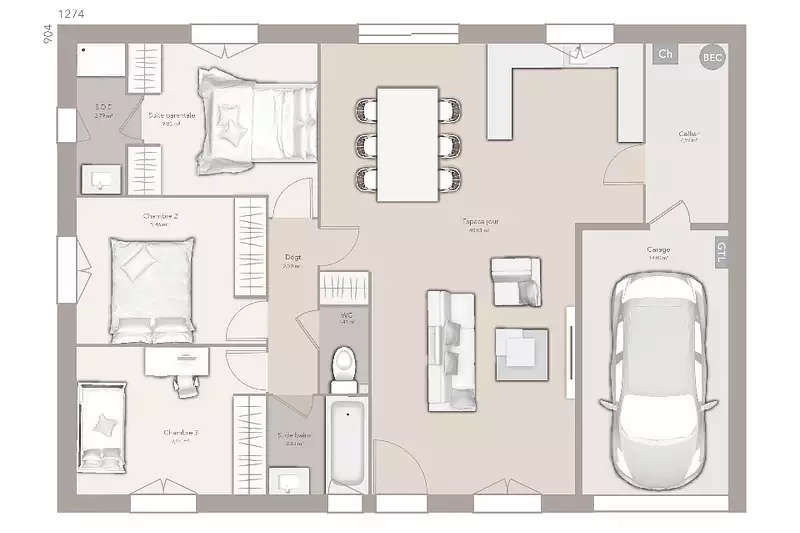 - Chambres : 3