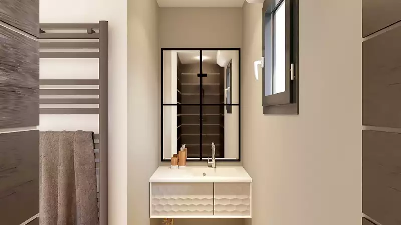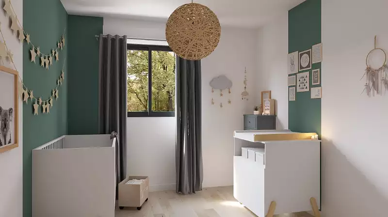 La visite de la maison ossature bois se poursuit dans le coin nuit séparé de l'espace jour par l'entrée, puis d'un couloir conduisant aux chambres. Une suite parentale avec une salle d'eau offre davantage de tranquillité et de confort, le reste de la famille ayant accès à une salle de bain spacieuse avec WC séparés. Afin de parfaire ces prestations très accommodantes, l'aménagement d'une buanderie est tout à fait envisageable.