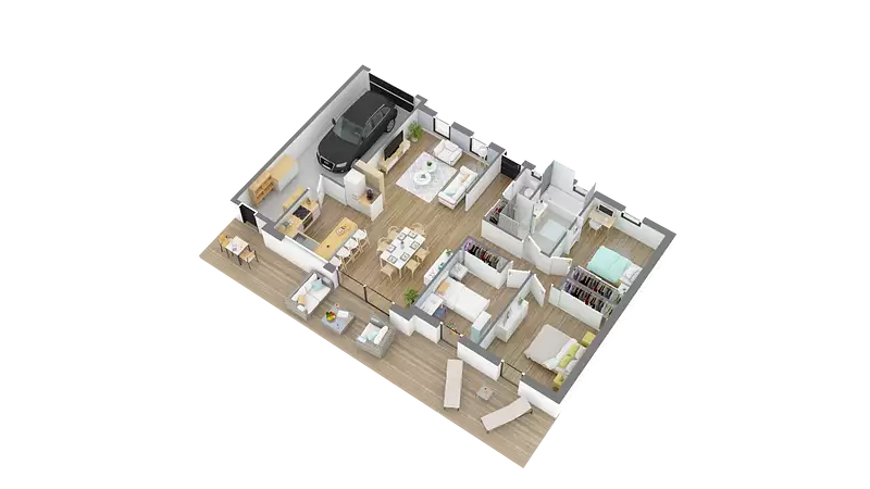 Maison plain-pied moderne, fonctionnelle et entièrement personnalisable, conforme à la réglementation RE 2020. Ce modèle peut être adapté à vos besoins et envies.