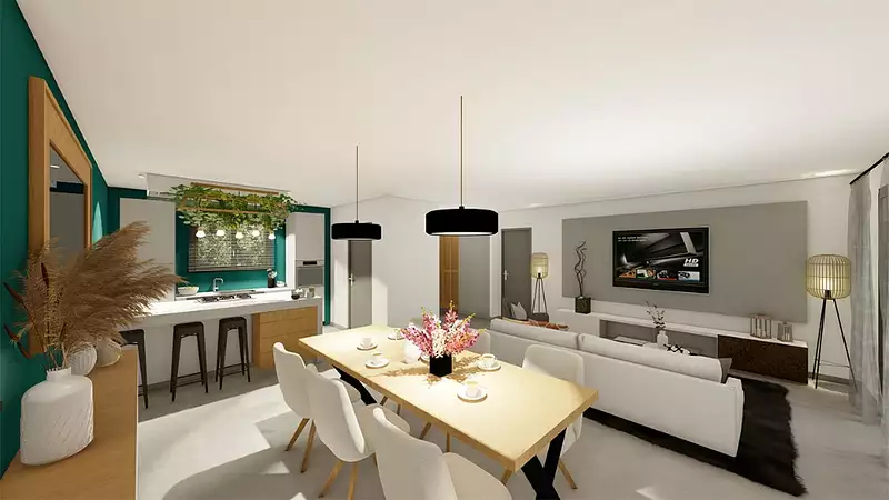 Idée de réalisation en modèle prêt à décorer sur l'un de nos terrains partenaires, sous réserve de disponibilités. Voir détails en agence.