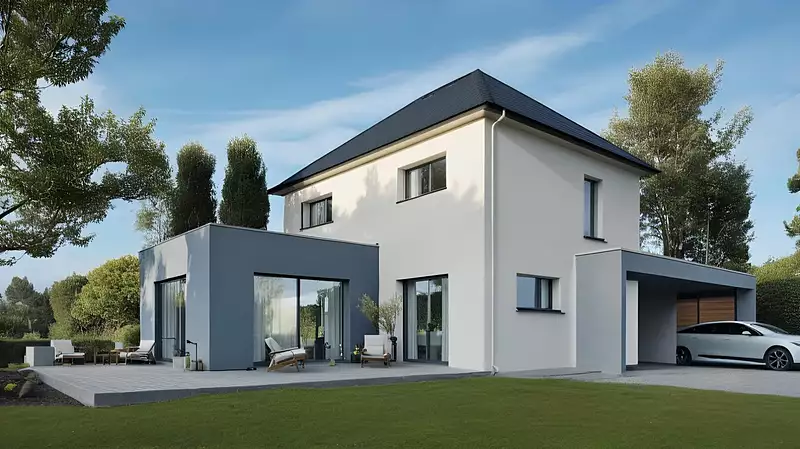 La maison, d’une surface habitable de 135 m², a été conçue pour répondre aux besoins des familles modernes. Avec ses 5 pièces, dont 3 chambres spacieuses, chaque membre de la famille pourra bénéficier d'un espace personnel tout en profitant d'un vaste espace de vie commun. Cette disposition favorise la convivialité et permet d’installer un mode de vie confortable au quotidien.