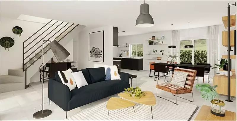 Implantée sur un terrain de 320 m², cette maison contemporaine de 120 m² habitables offre des volumes généreux et une distribution idéale pour une vie de famille confortable.