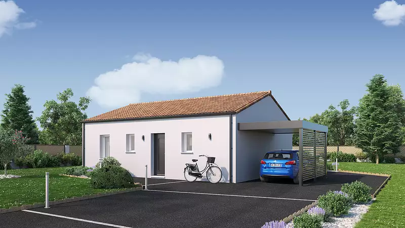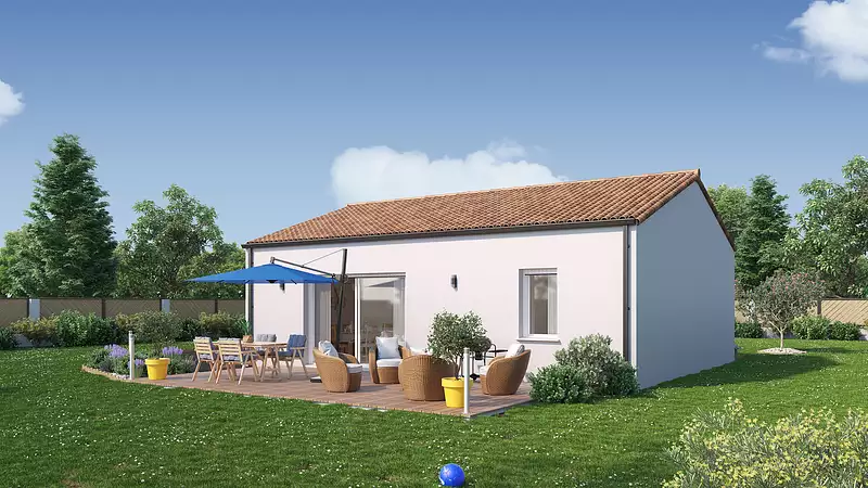 Idéal premier achat, cette maison de plain-pied fonctionnelle et lumineuse vous propose une vaste pièce de vie éclairée par sa grande baie vitrée avec cuisine ouverte, deux chambres avec rangement, salle de bains et cellier indépendant. Pour vous assurer un confort de vie et conformément à la RE2025, nous avons choisi un mode de chauffage par PAC + plancher chauffant, volets roulants électriques. Prix hors fourniture et pose : des appareils sanitaires (sauf système de chauffage et d'eau chaude sanitaire), du carrelage et de la faïence, des revêtements de sol dans les chambres. Hors décoration et aménagement intérieur et peinture. Hors raccordements, frais de notaire et dommage ouvrage.