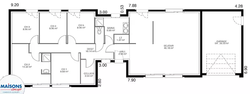 Proposée par MAISONS CONCEPT AGENCE DU MANS – 4 pièces - 3 chambres - terrain 420 m²