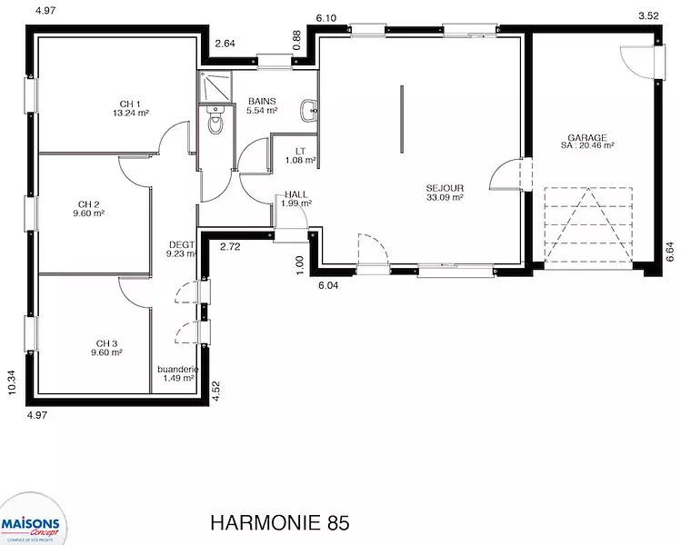 D'une surface de 85 m², Hilya est judicieusement agencée pour maximiser l'espace et le confort. Elle comprend 4 pièces lumineuses, dont 3 chambres accueillantes, promettant un cadre de vie idéal pour une famille. Le garage accolé, pratique et esthétique, s'intègre parfaitement à l'ensemble, renforçant le caractère fonctionnel de cette demeure.