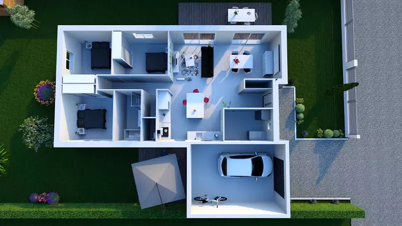 Terrain proposé par un partenaire foncier selon disponibilités et autorisation de publicité au prix de 64 900 €. Hors droit d'enregistrement et frais de notaire. Maison proposée, avec un contrat de construction de maison individuelle, dans le cadre de la loi du 19/12/1990, au prix de 210 100 € (Hors branchements et raccordements, papiers peints, peintures, revêtement de sol dans les chambres, qui sont chiffrés dans les travaux qui restent à charge du client. Tarif modifiable sans préavis). Étiquette énergie : A. Différents modèles disponibles pour ce terrain. Assurances et garanties du constructeur comprises (RC professionnelle, décennale, dommage ouvrage).