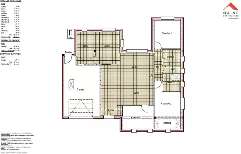 Proposée par MAINE CONSTRUCTION – 4 pièces - 3 chambres - terrain 568 m²