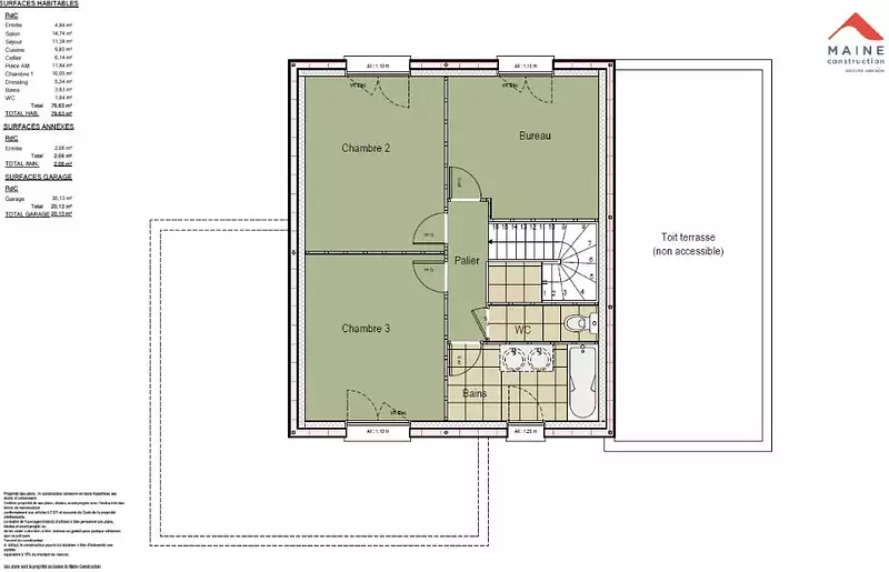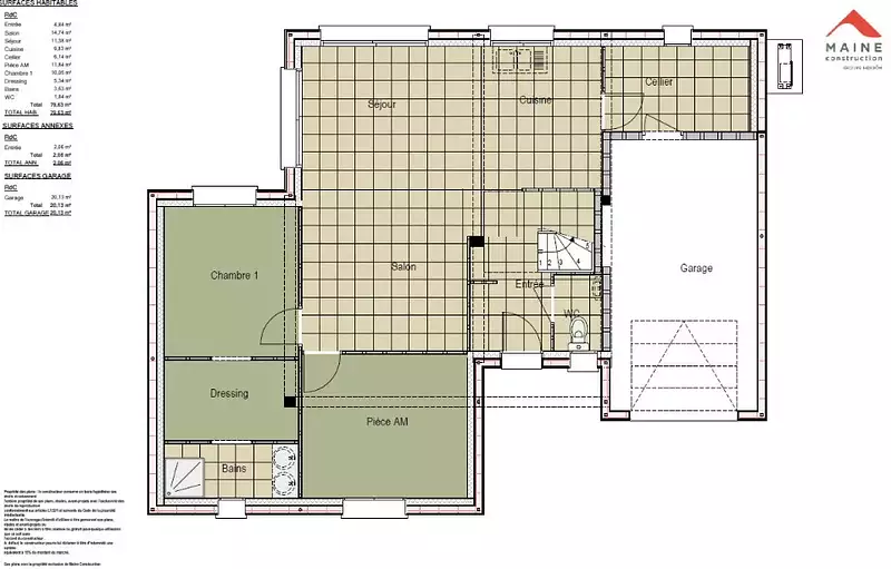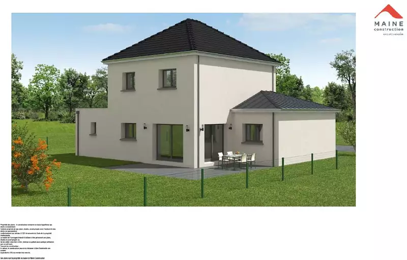 Terrain proposé par un partenaire foncier selon disponibilités et autorisation de publicité au prix de 77 400 €. Hors droit d'enregistrement et frais de notaire. Terrain + Maison proposés au prix de 335 000 € (Hors branchements et raccordements, papiers peints, peintures, revêtement de sol dans les chambres. Tarif modifiable sans préavis). Etiquette énergie : A. Différents modèles disponibles pour ce terrain. Assurances et garanties du constructeur (RC professionnelle, décennale, dommage ouvrage, garantie de remboursement de l'acompte, livraison à prix et délai convenu) : https://www.maine-construction.fr/mentions-legales/. HEXAOM Services est enregistré auprès de l'ORIAS en tant que Courtier en financement, Niveau 1, sous le numéro 14001345.