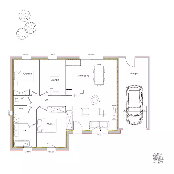 Proposée par MAISONS FRANCE CONFORT – 5 pièces - 3 chambres - terrain 450 m²