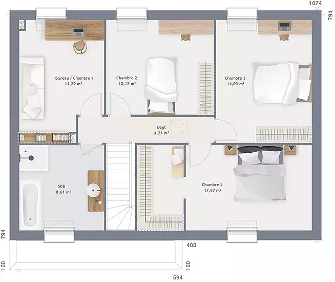 4 chambres spacieuses