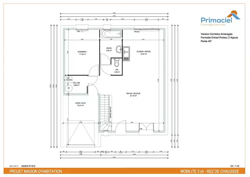 La Mobilité se distingue par son agencement bien pensé, offrant un espace de vie généreux de près de 40 m² au rez-de-chaussée, comprenant une cuisine ouverte pour plus de convivialité. Ce niveau accueille également une chambre de 11 m², parfaite pour une suite parentale, grâce à sa salle d'eau attenante de 4.8 m² et des WC séparés.
