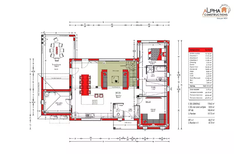 Proposée par ALPHA CONSTRUCTIONS – 7 pièces - 4 chambres - terrain 1 700 m²