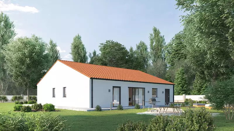 Les caractéristiques principales de cette maison incluent un toit à 2 pans ou 4 pans, des baies coulissantes pour une luminosité optimale, et un garage intégré. De plus, cette maison neuve est basse consommation et conforme à la RE2020, garantissant ainsi des économies d'énergie et un confort de vie optimal.