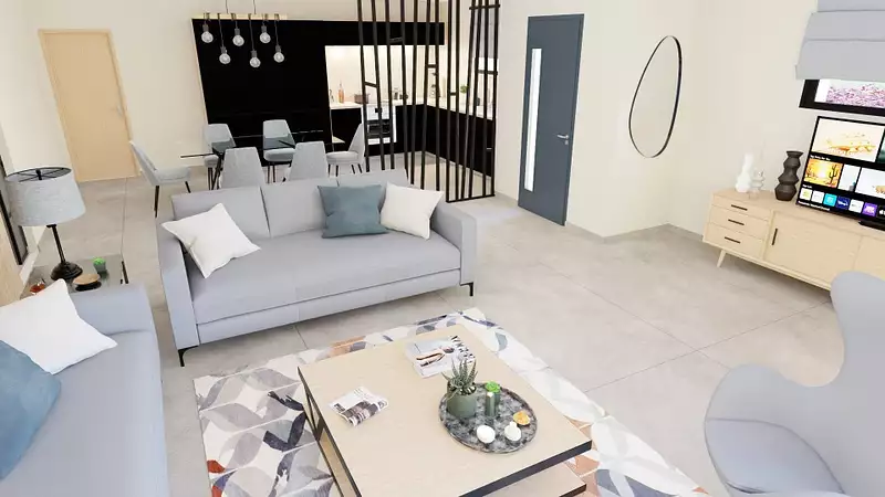 Proche de Perpignan - À Opoul-Périllos (66600), maison neuve en vente de 4 pièces, 124 m² sur 785 m² de terrain. Son intérieur compte trois chambres dont une suite et un séjour de 53m².