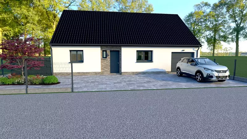 Terrain proposé par un partenaire foncier selon disponibilités et autorisation de publicité au prix de 80 025 €. Hors droit d'enregistrement et frais de notaire. Terrain + Maison proposés au prix de 182 107 € (Hors branchements et raccordements, papiers peints, peintures, revêtement de sol dans les chambres. Tarif modifiable sans préavis). Etiquette énergie : A. Différents modèles disponibles pour ce terrain. . HEXAOM Services est enregistré auprès de l'ORIAS en tant que Courtier en financement, Niveau 1, sous le numéro 14001345.