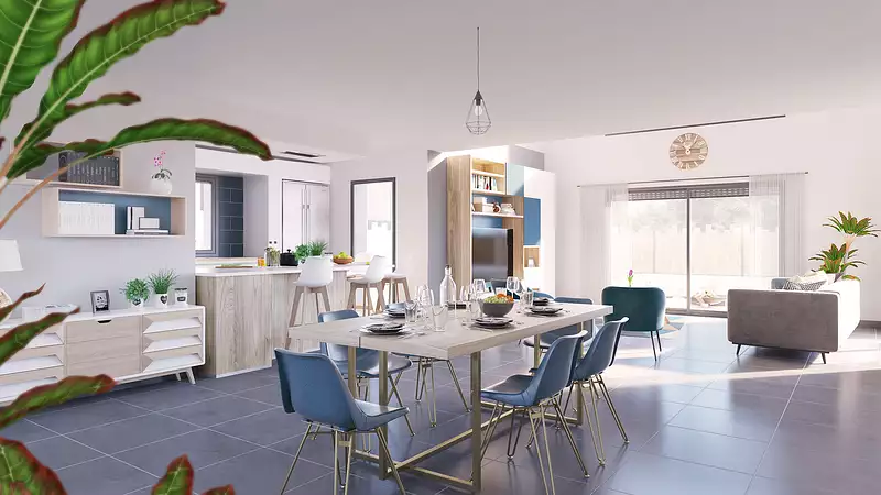 Un espace qui évolue avec vous ! Ici, tout est possible : un vaste salon-séjour lumineux de plus de 60 m², deux chambres confortables au rez-de-chaussée, et un étage modulable pour laisser libre cours à vos envies. Besoin d’une salle de jeux, d’un espace télétravail ou de chambres supplémentaires ? C’est vous qui décidez ! Avec une architecture élégante et un volume repensé pour la lumière, cette maison personnalisable n’attend que votre touche pour devenir votre chez-vous idéal. Une maison unique, pensée pour vous et par vous. Prêts à la façonner ?. Pour un confort optimal et conforme à la RE2025, cette maison dispose d’une PAC avec plancher chauffant, radiateurs à l’étage et volets roulants électriques. À noter : Le prix indiqué exclut les revêtements de sol des chambres, la cuisine aménagée, la peinture, la décoration, les raccordements, les frais de notaire et l’assurance dommages-ouvrage. (Piscine non contractuelle, non comprise dans le prix).