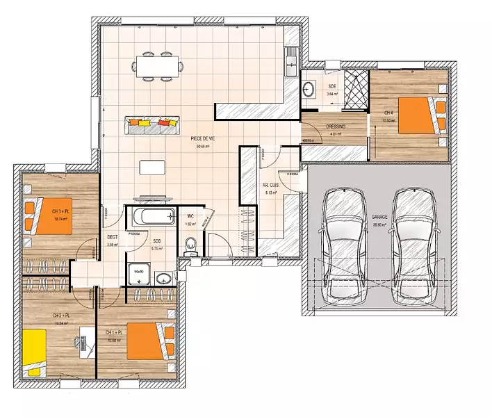Proposée par MAISONS BERNARD JAMBERT – 5 pièces - 4 chambres - terrain 404 m²