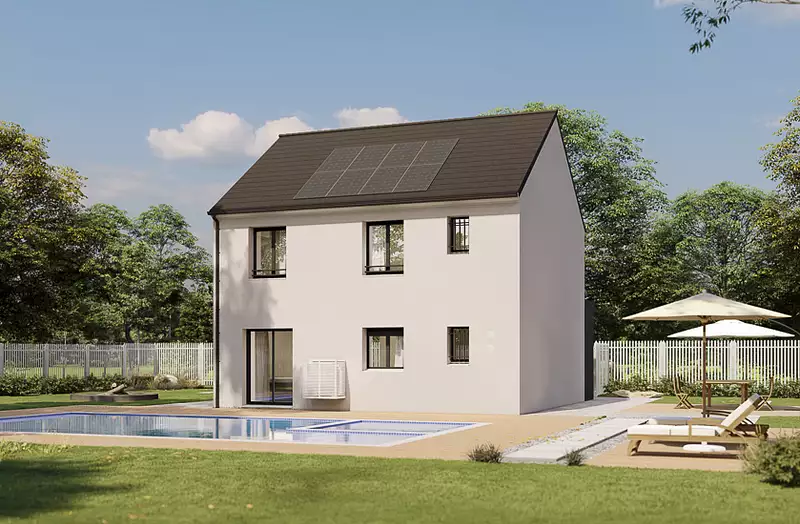 Les menuiseries sont en PVC de couleur blanche. La toiture est réalisée en tuiles béton double romane. Plusieurs couleurs d'enduit extérieur sont proposées.