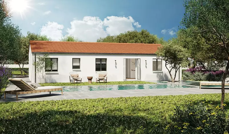 Nous vous proposons cette maison neuve, baptisée Mona Lisa, un modèle phare de la gamme MAISON ET JARDIN, qui allie fonctionnalité, esthétique contemporaine et performance énergétique. Disponible en plusieurs déclinaisons pour s'adapter à vos besoins, la Mona Lisa est conçue pour être la maison de plain-pied idéale, répondant à toutes les attentes en termes de confort et de style de vie.