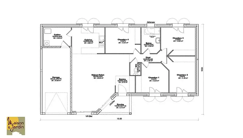 Proposée par MAISON ET JARDIN – 5 pièces - 4 chambres - terrain 1 500 m²