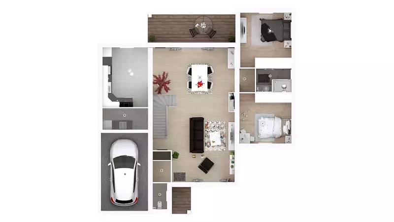 Idée de réalisation en modèle prêt à décorer sur l'un de nos terrains partenaires, sous réserve de disponibilités. Voir détails en agence.