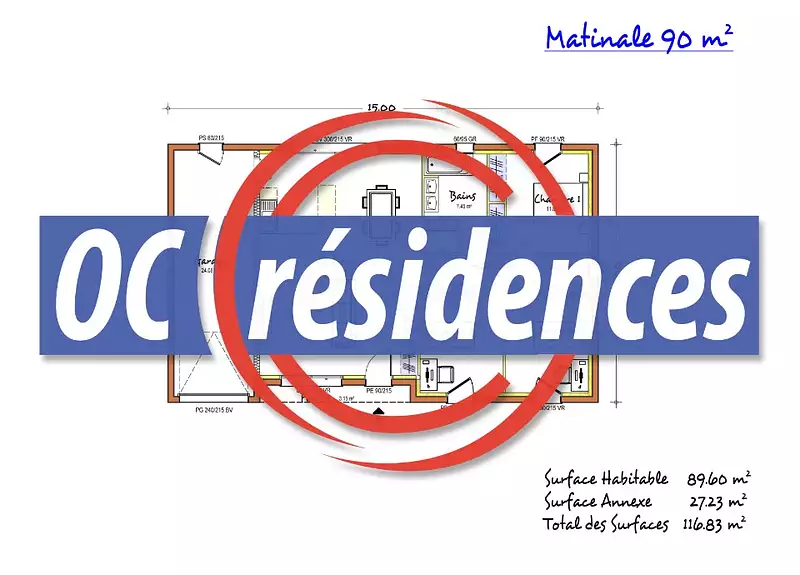 Oc résidences, constructeur de maisons individuelles vous propose cette maison neuve à construire dans le département du Tarn, l'Aude, l'Hérault, la Haute-Garonne ainsi que les Pyrénées Orientales. Le modèle Matinale, résolument contemporain et fonctionnel, se compose d'une grande pièce à vivre traversante de 43 m² avec cuisine ouverte. Le coté nuit s'articule autour de 3 grandes chambres avec placard, une grande Salle de Bains de 7,5 m² avec baignoire, double vasque et un grand espace douche. Son garage de 24 m² vous permettra de stationner votre voiture et de créer un espace de rangement pour votre quotidien. Oc Résidences est votre constructeur sur mesure en Occitanie.