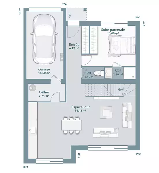 Proposée par MAISONS FRANCE CONFORT – 5 pièces - 3 chambres - terrain 190 m²