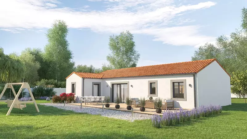 C’est une maison très fonctionnelle. Avec ses 81 m², elle est parfaite pour accueillir une petite famille. Dotée de 3 chambres et de 4 pièces, elle offre un espace de vie optimisé et convivial. La chambre parentale est séparée du coin nuit ""enfant"", et dispose d’une salle d’eau privative ainsi que d’un accès direct à la terrasse, pour un confort optimal. Côté jour, le modèle Agonac propose un beau volume avec une cuisine ouverte sur le séjour, idéale pour les moments en famille ou entre amis.