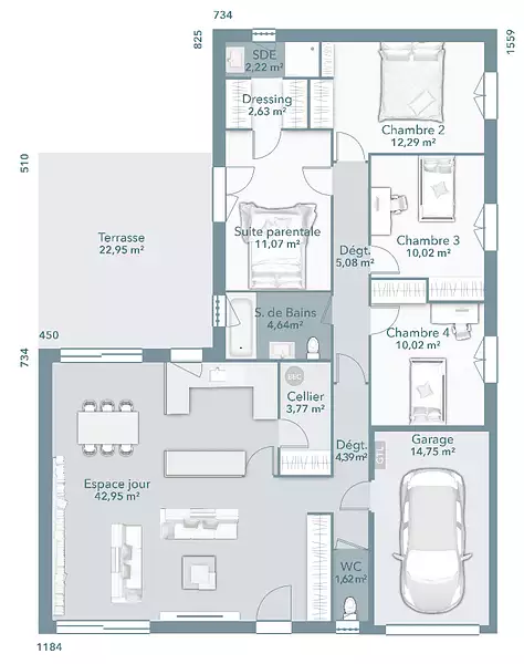 Proposée par MAISONS FRANCE CONFORT – 5 pièces - 4 chambres - terrain 500 m²