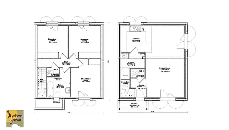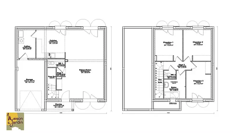 Proposée par MAISON ET JARDIN – 4 pièces - 3 chambres - terrain 299 m²