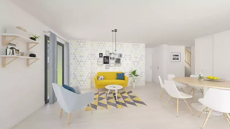 Charmante maison à étage, aux contours étudiés, la Pétunia déploie ses pétales sur une surface de 109 m². Un espace idéal pour loger une famille, avec quatre chambres réparties sur les deux niveaux. Un joli balcon en angle, couvert, agrémente l’une des chambres, tandis qu'une charmante petite terrasse couverte prolonge le séjour, offrant un espace extérieur agréable et convivial.