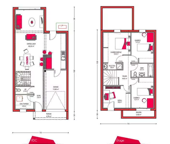 Cette maison familiale se compose de 3 chambres spacieuses, dont une suite parentale à l'étage, d'une grande salle de bain, et d'un espace de vie lumineux avec cuisine ouverte donnant sur le jardin. Conçue selon la norme RE2020, elle offre confort, économies d'énergie et performances thermiques de dernière génération.