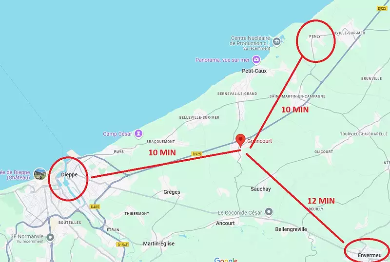 Proximité de Dieppe (10 MIN), Envermeu (12 MIN) et Penly (10 MIN).